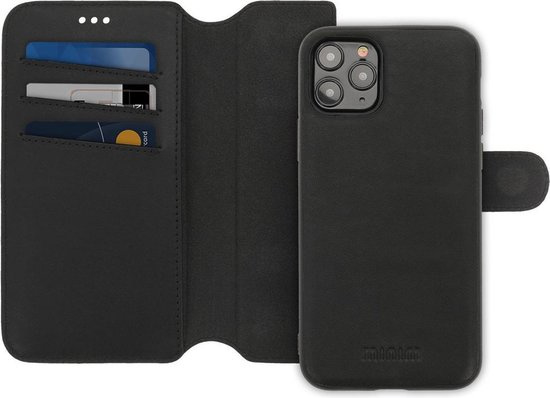 iPhone 13 Pro: MINIM 2 in 1 leather Bookcase wallet (Zwart)
