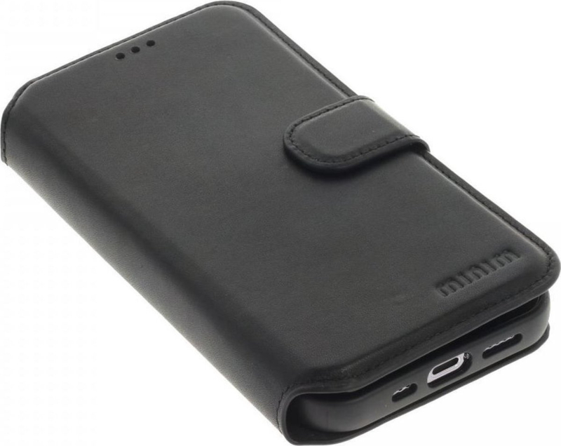 iPhone 13 Pro: MINIM leather Bookcase (Zwart)