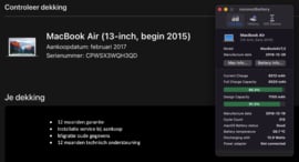 Nette MacBook Air modeljaar 2015 met 8GB RAM geheugen en 500GB opslag. De laptop wordt geleverd incl Magsafe 2 adapter. De MacBook heeft slecht lichte gebruikerssporen.