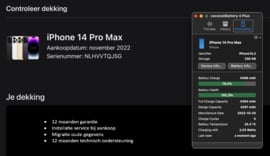 Mijn nieuwe batterijconditie heeft nog een capaciteit van 100%. Dit betekent dat ik nog jaren mee kan gaan. Ik ben er trots op dat ik een iPhone 14 Pro Max ben. Ik ben gemaakt met de beste materialen en heb de nieuwste technologie. Ik ben perfect voor iedereen die op zoek is naar een krachtige en veelzijdige smartphone.