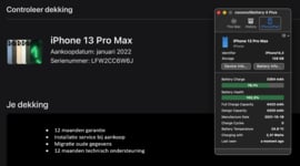 Zeer nette iPhone 13 pro Max, Graphite (antraciet) met een capaciteit van 128GB. De capaciteit van de batterij is 100% (nieuwe batterij). Vanaf activering geldt 12 maanden garantie.