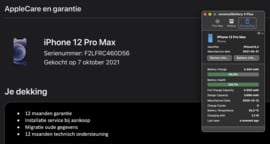 Zeer nette blauw gekleurde iPhone 12 Pro Max met 256GB opslag. De technische staat is 100% en er is een nieuwe batterij geplaatst. De levering is incl USB-C to lightning kabel en 12 mnd garantie!