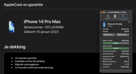 Mijn batterijconditie is weer 100%, omdat er een nieuwe batterij is geplaatst. Dit betekent dat ik nog jaren mee kan gaan. Ik ben er trots op dat ik een iPhone 14 Pro Max ben. Ik ben gemaakt met de beste materialen en heb de nieuwste technologie. Ik ben perfect voor iedereen die op zoek is naar een krachtige en veelzijdige smartphone.